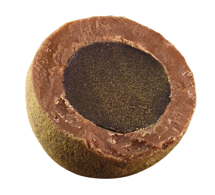 Sjokoladedragerte lakriskuler med lakrispulver.