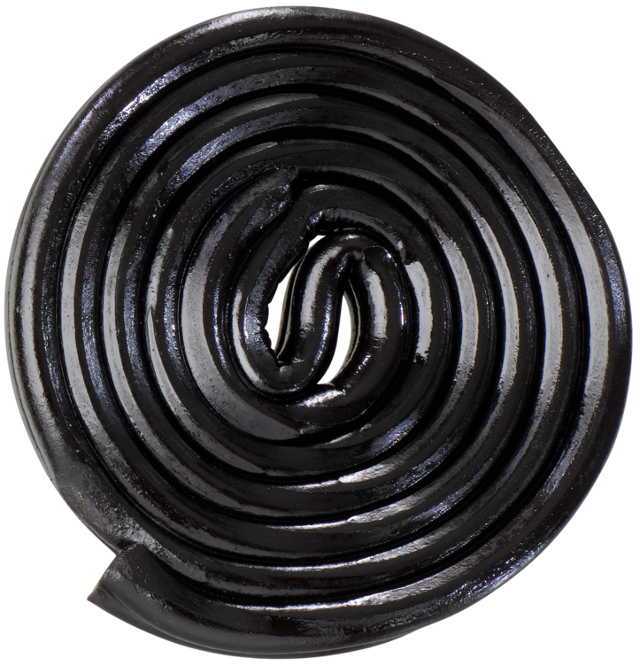 mørk sirup, hvetemel, glykosesirup, stivelse, lakrisekstrakt (3 %), salt, aroma, syre, sitronsyre, solsikkeolje, overflatebehandlingsmiddel (bivoks, hvit og gul).