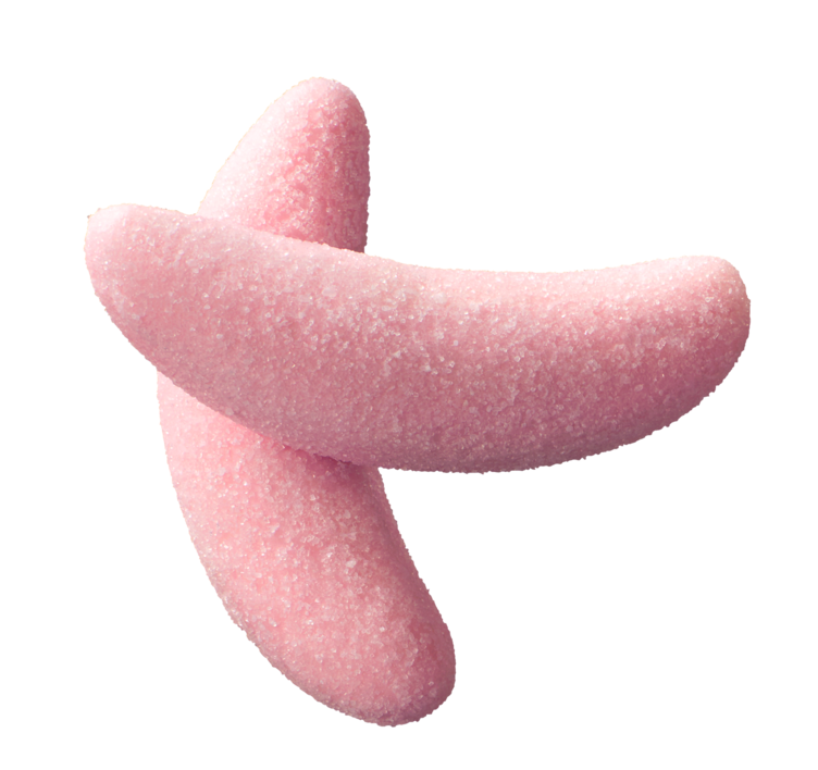 Surt geléskm med jordbærsmak.